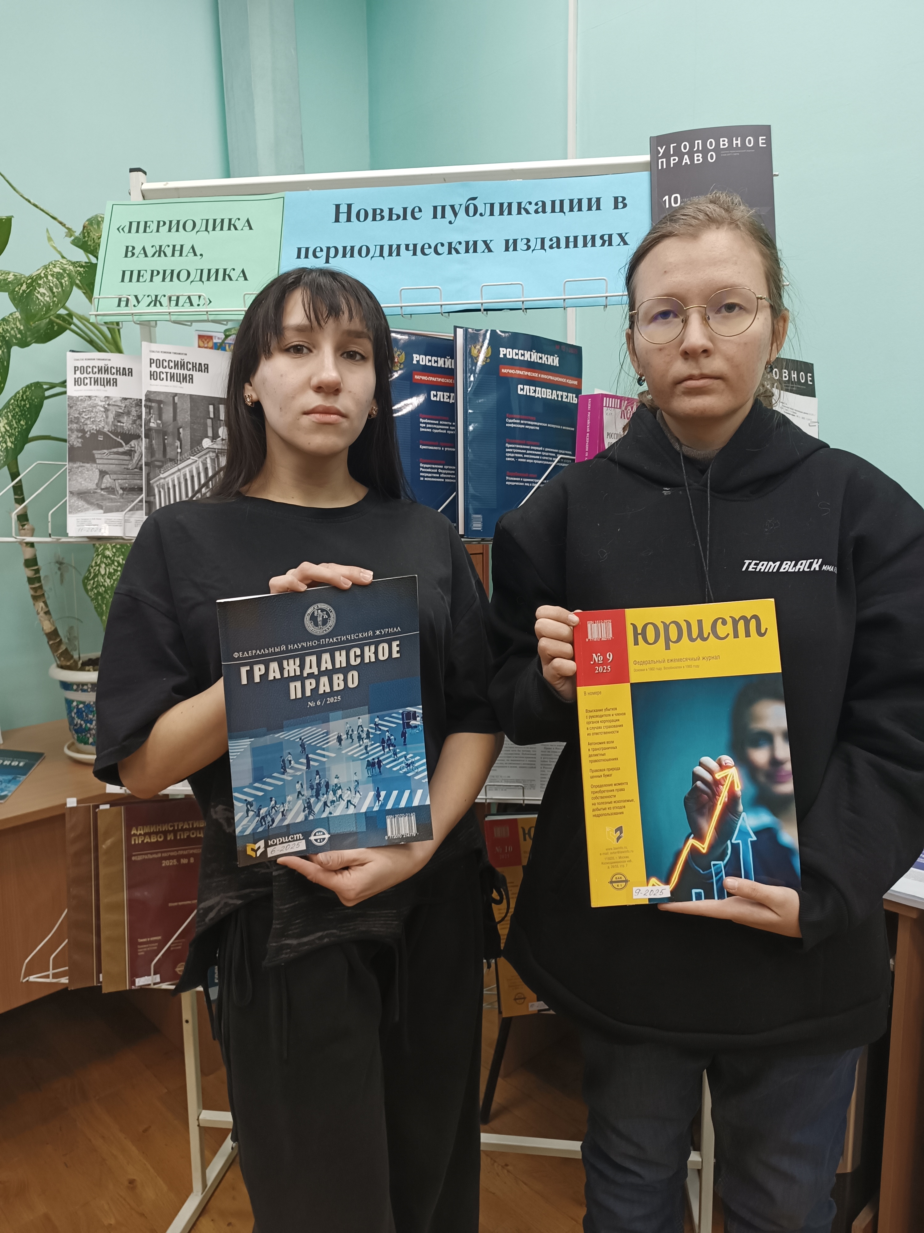 В библиотеке юридического отдела ЧИ БГУ организована выставка-просмотр журнальных новинок. Читатели могут ознакомиться с новыми поступлениями в фонд периодических изданий, выбрать журнал интересующей тематики. Периодика — самый быстрый источник информации, поэтому выставка новых журналов позволяет «показать» текущие события быстрее, чем появятся книги на эту тему.